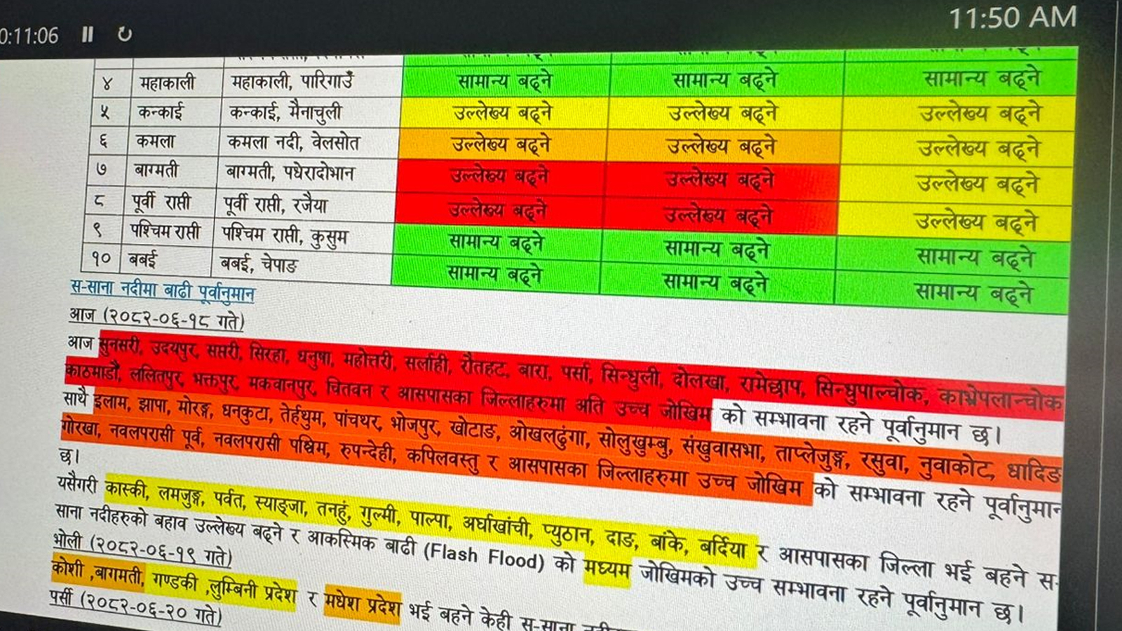 नेपालका ४० जिल्लामा बाढीको उच्च जोखिम