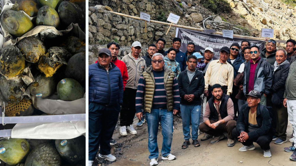 चार दिनदेखि तातोपानी नाका अवरोध हुँदा कन्टेनरमै कुहिन थाले फलफूल