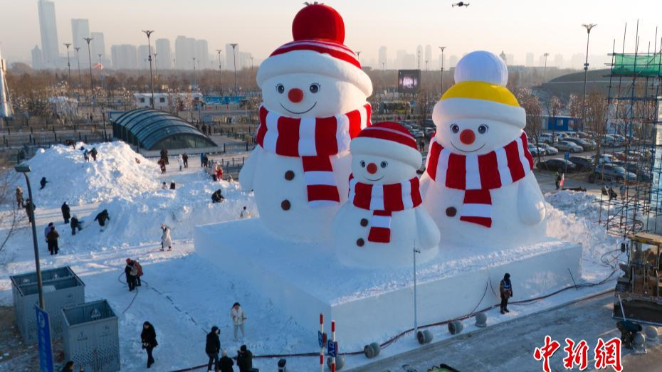 हिउँको मूर्तिकला "फेयरीटेल स्नोम्यान परिवार"