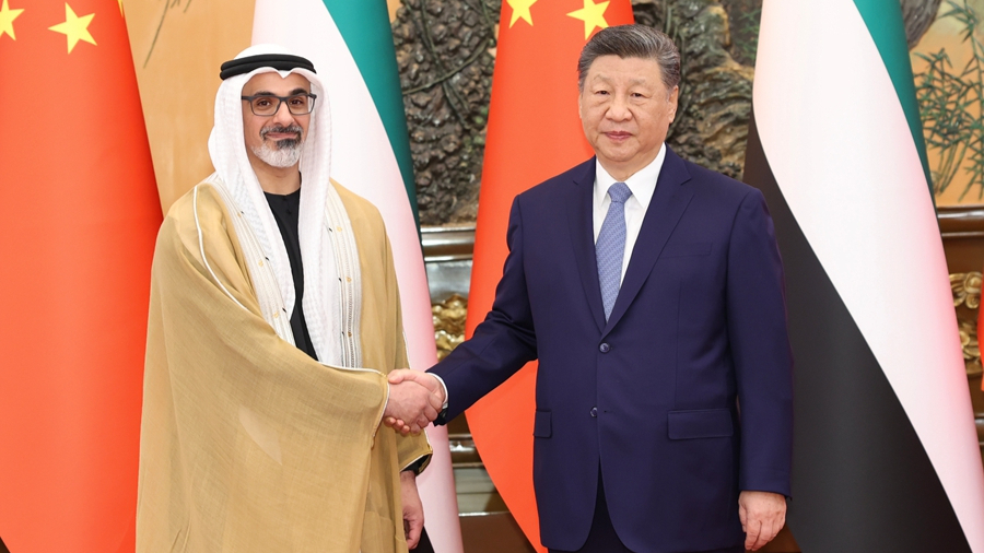 सी चिनफिङ र संयुक्त अरब इमिरेट्सको अबुधावीका युवराज खालिदबीच भेटघाट